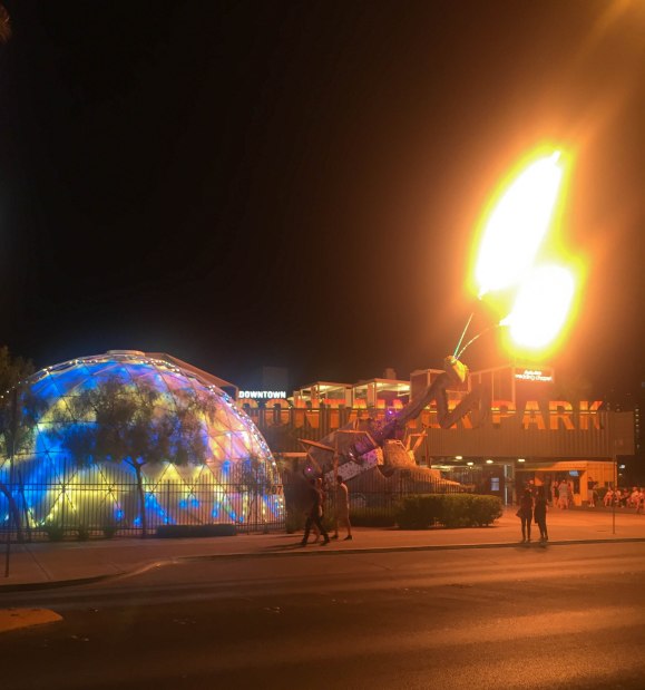 Next, we decided to explore Downtown Container Park, located in old Downtown Las Vegas. Y’all I’m obsessed with this place. It is basically a funky shopping center built in a series of old storage containers. It has a massive tree house for kids to play in, art galleries, food and a whole host of locally owned businesses for you to enjoy. There is also a setup for live music and large-scale art installations (including a giant fire-spitting mechanical dancing mantis). This quirky space is covered in local flare and if you want to feel a bit tucked away from the standard Sin City sparkle, this is a great place to do it.